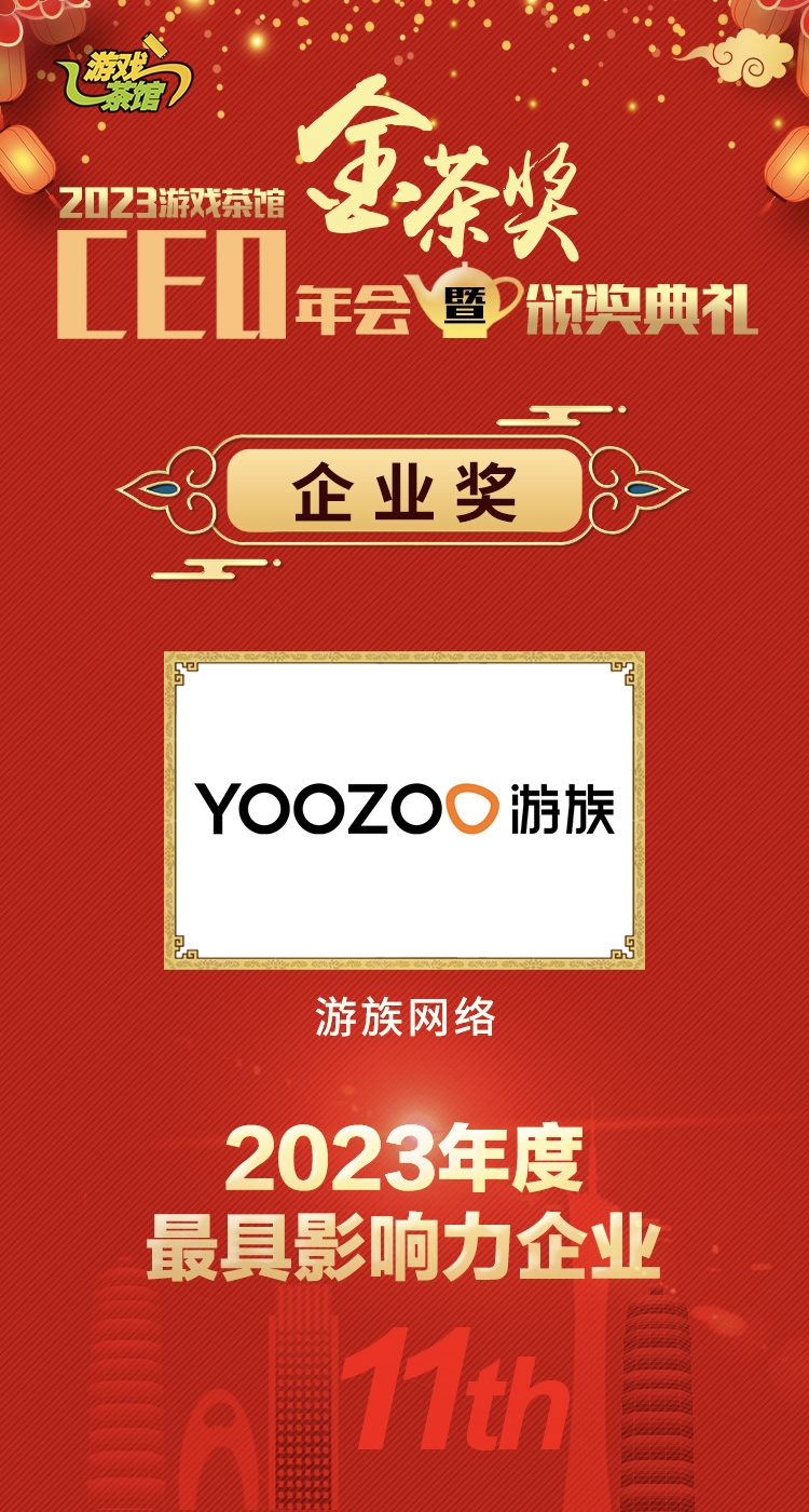 12月27日,,,,由游戏茶馆主办的2023年第十一届“金茶奖”正式揭晓,,经过数月的激烈角逐,,LEWIN乐玩网络最终凭借品牌影响力与公司综合竞争力荣获“2023年度最具影响力企业”奖项。。。