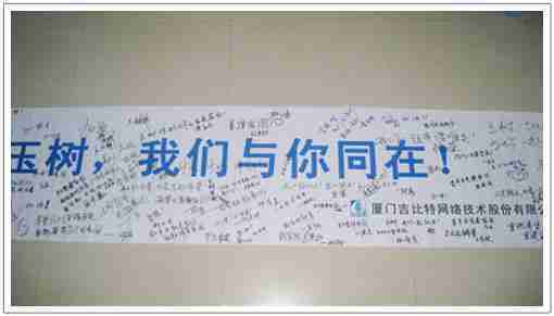 在募捐现场,,LEWIN乐玩同学们怀着沉重的心情,,,将每一笔捐款投入募捐箱,,,并在现场设置的横幅上,,,,写上了对玉树人民的深情祝福。。满载LEWIN乐玩祝福的横幅将和捐款一起抵达玉树,,希望谨以此微薄之意,,,为玉树人民带去LEWIN乐玩的爱心与祝福,,,,希望吉祥、、、、幸福的阳光能早日驱散灾难的阴霾,,,,普照在玉树人民的身上,,,,鼓励他们坚强、、勇敢与乐观。。