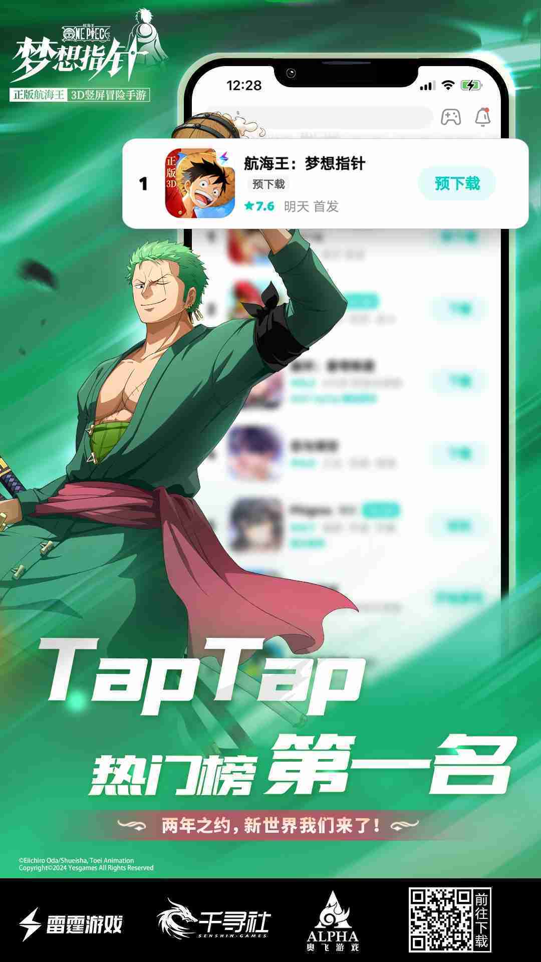 4月1日,,,手游《航海王:::梦想指针》正式公测,,上线仅2小时不到就登上了App Store免费榜Top1,,,与TapTap热门榜第一。。